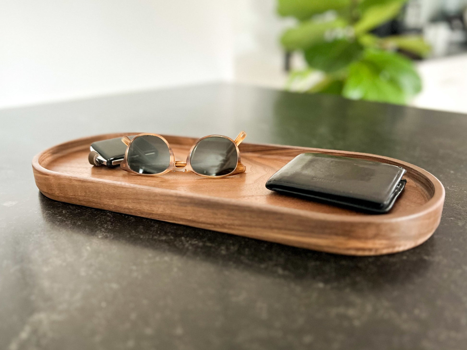 ELEVATE YOUR HOME'S STYLE: Hold your keys, wallet and everyday carry items in style with this modern walnut valet tray.